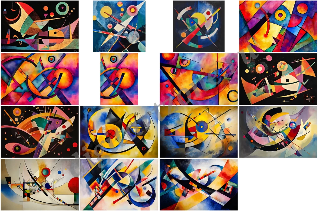 Подборка из 15 абстрактных композиций с использованием различных форм и линий.