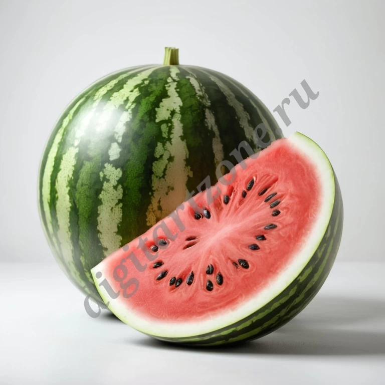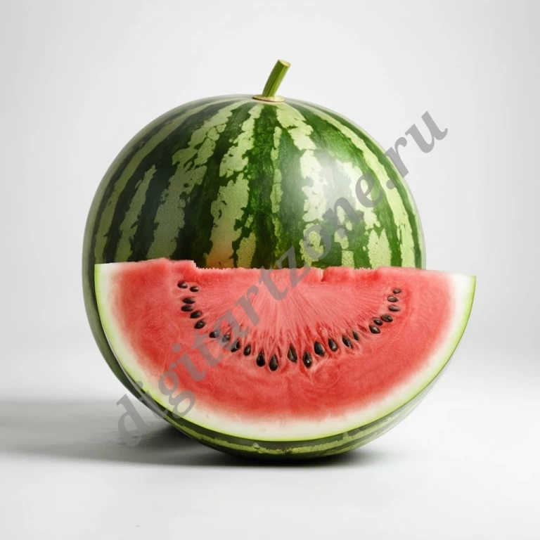 Реалистичный арбуз на беом фоне.