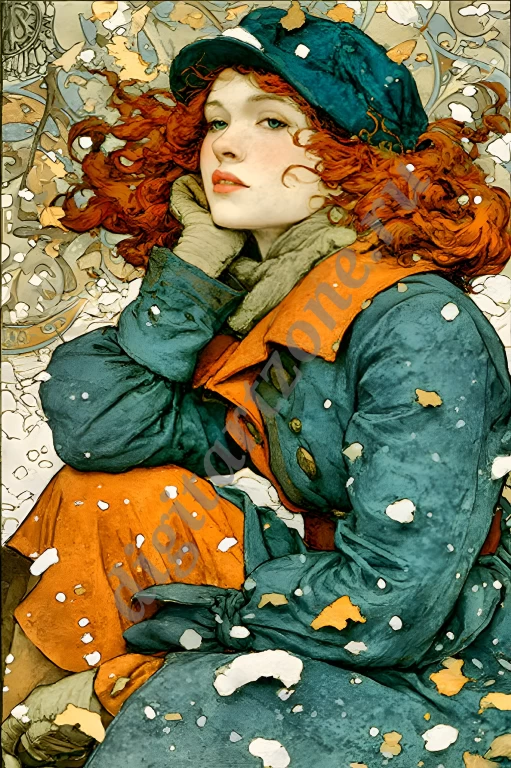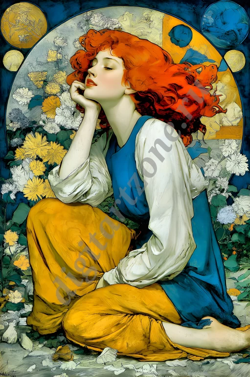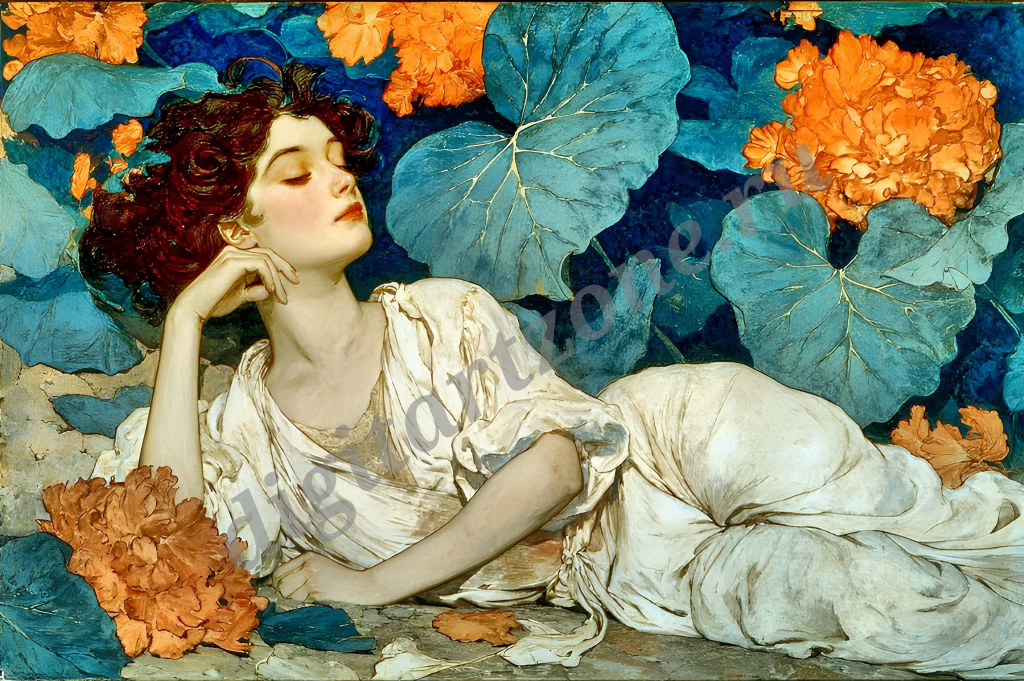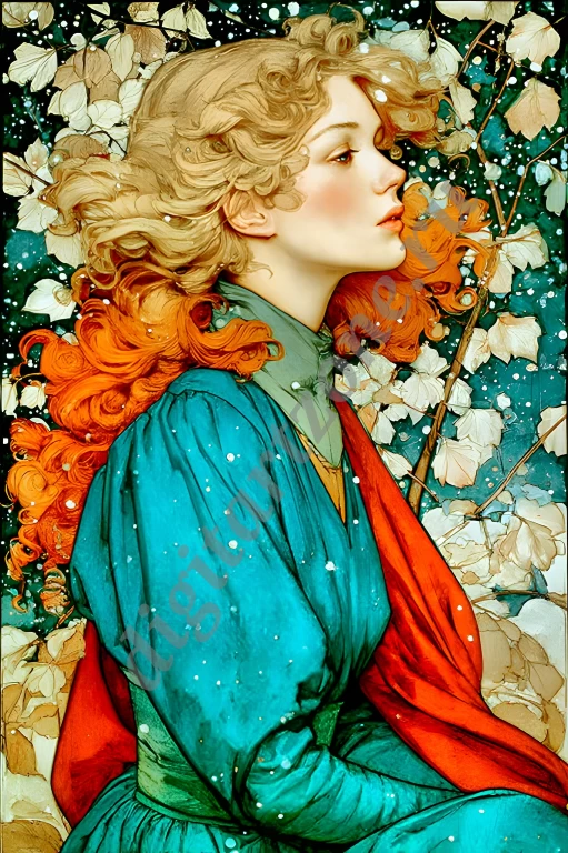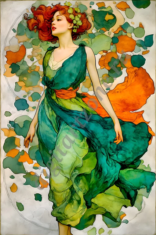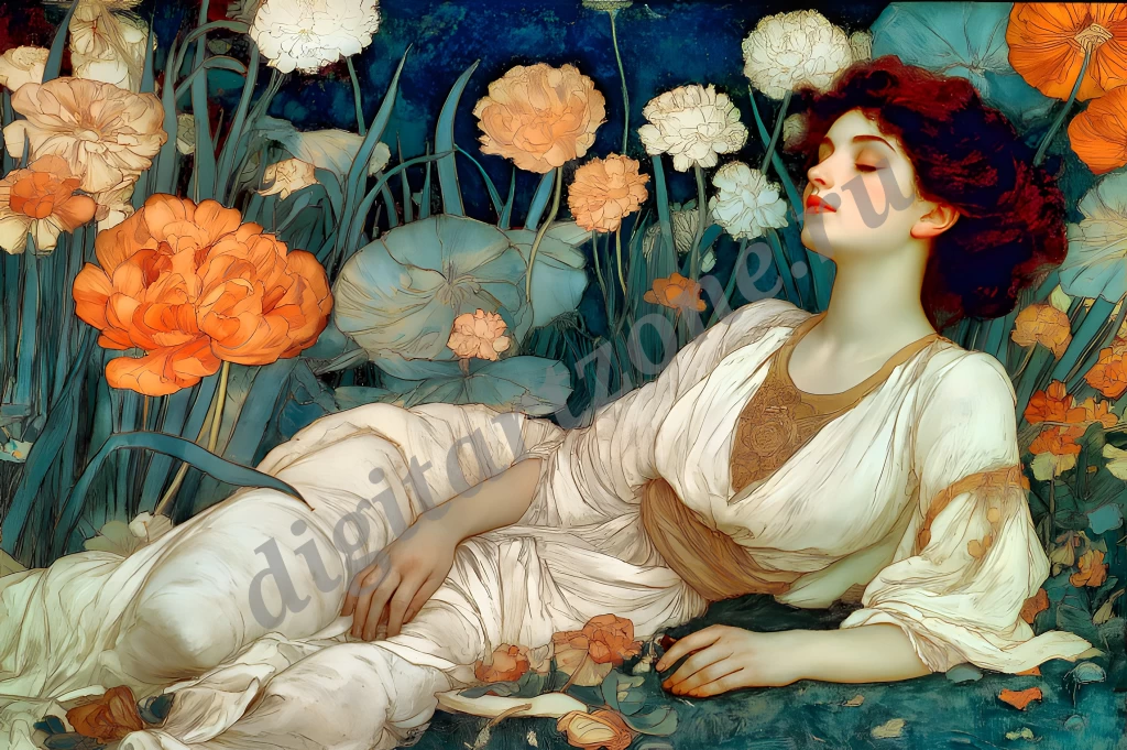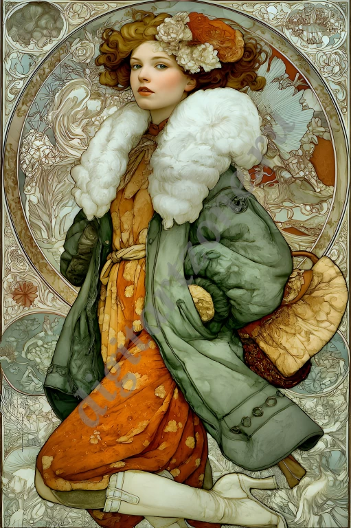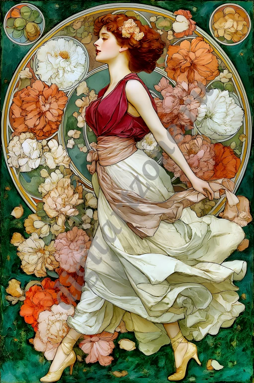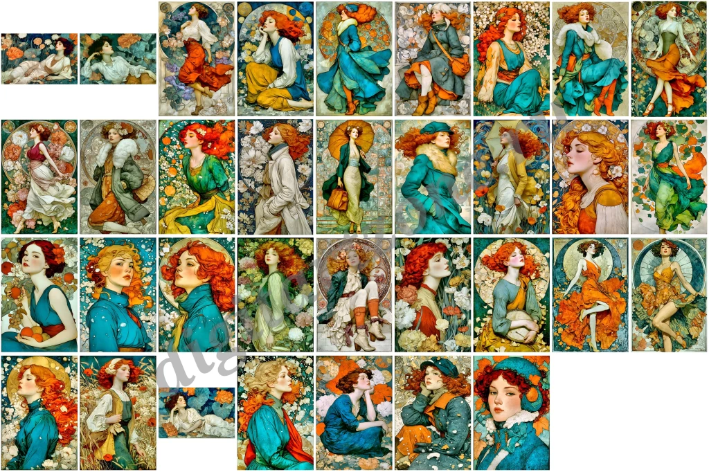 Подборка из 34 картин с изображением женщин в стиле художника Альфонса Мухи. Для печати постеров и репродукций.