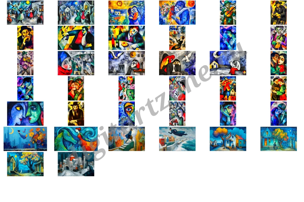 Подборка из 38 картин в стиле Марка Шагала для печати постеров и репродукций.