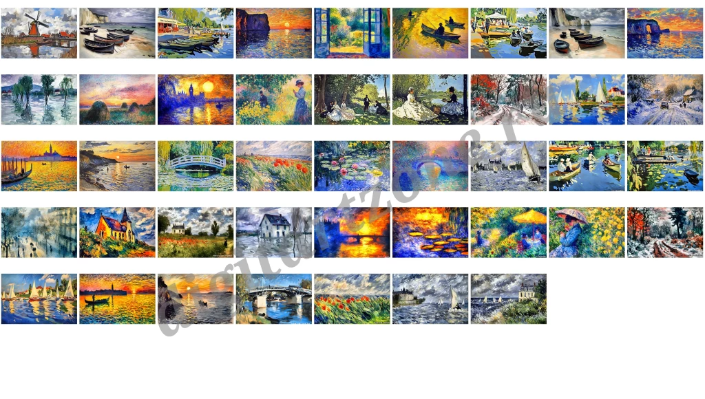 Подборка из 43 картин в стиле Клода Моне плюс альбом картин художника в формате PDF.