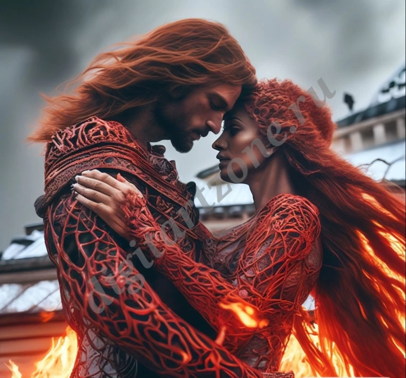 Обложка для книги фэнтези мужчина и женщина в огненной лаве