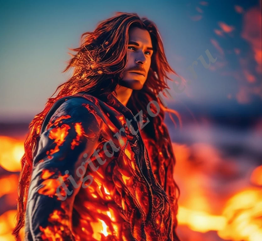 Обложка для книги фэнтези мужчина из огненной лавы