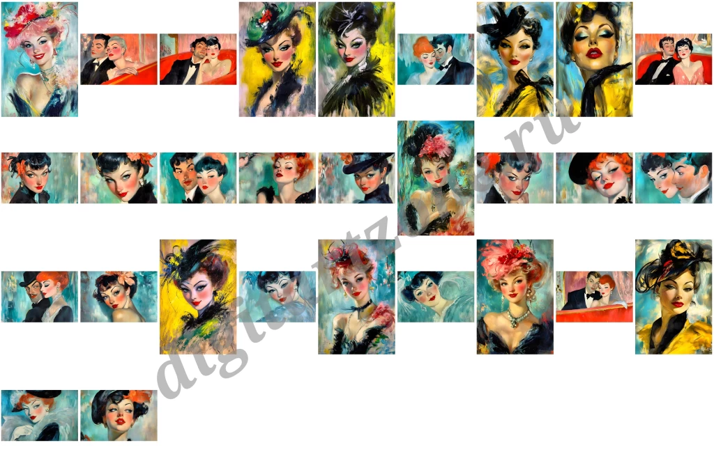 Подборка из 29 картин с портретами красивых девушек. Для печати постеров и репродукций.