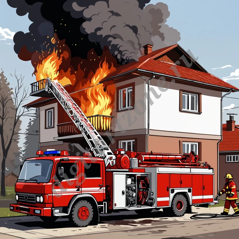 Пожарная машина на пожаре.