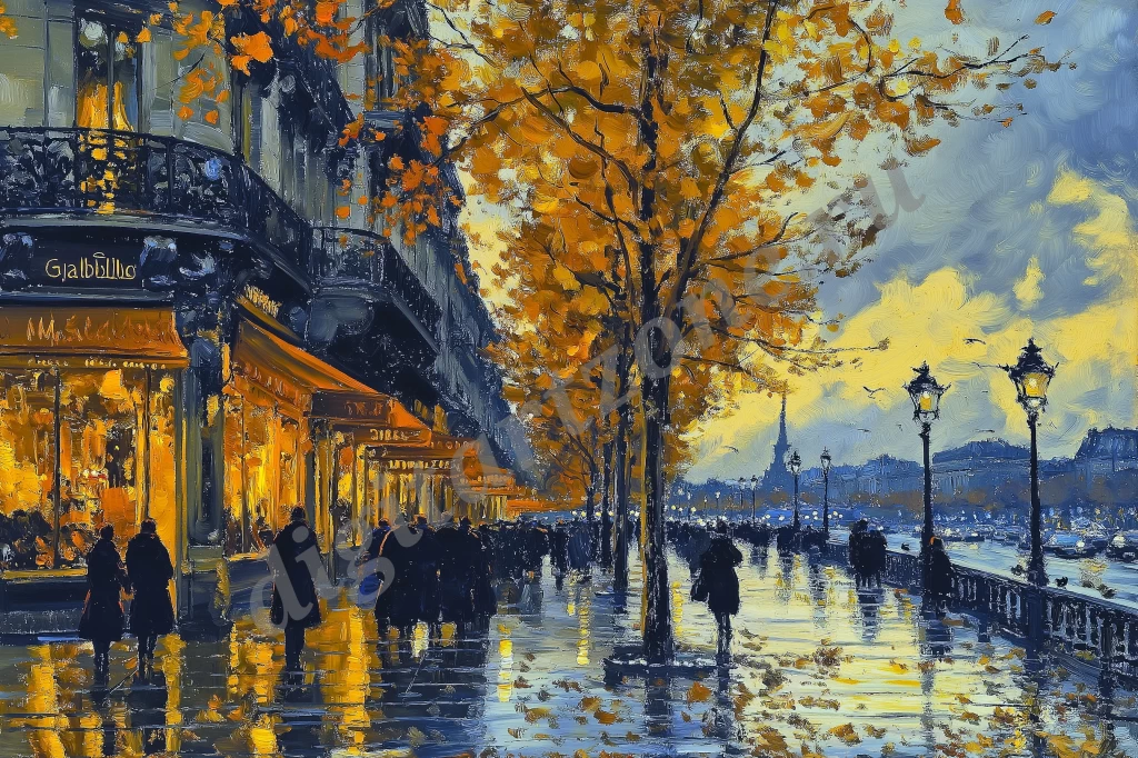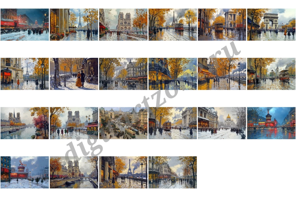 Подборка из 22 картин с видами Парижа для печати постеров и репродукций.