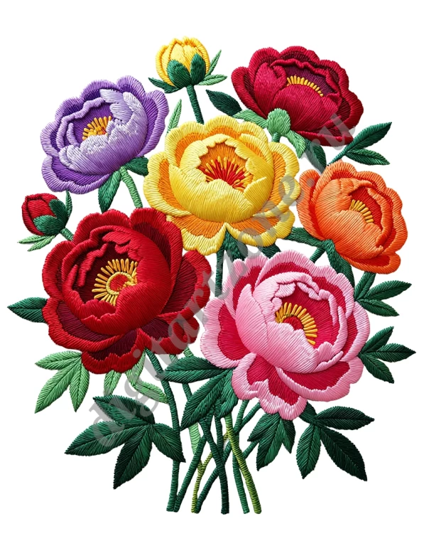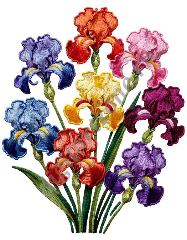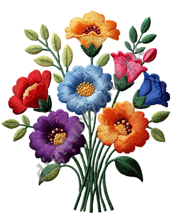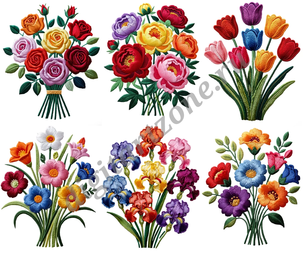 6 красивых PNG изображений цветов с эффектом объёмной вышивки.