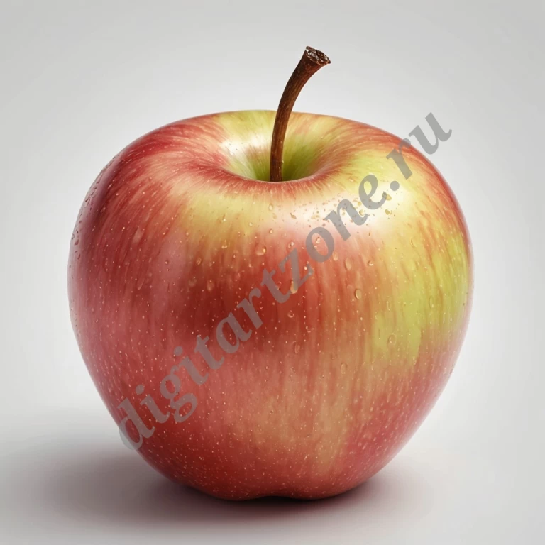 Реалистичное яблоко на белом фоне красного, зелёного и жёлтого цвета.