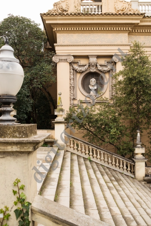 Архитектурный элемент с мужским бюстом в парке национального музея Барселоны. Испания. Каталония.
