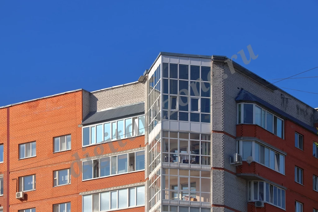 Фотография многоэтажного кирпичного жилого дома.