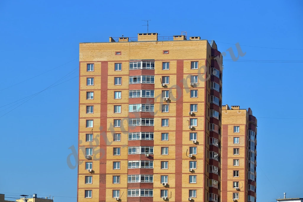 Фотография многоэтажного кирпичного жилого дома.