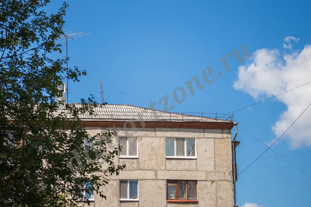 Фотография многоквартирного панельного дома на фоне голубого неба.
