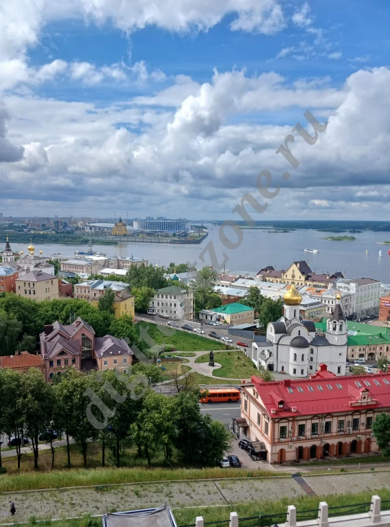 Вид на Нижний Новгород и реку Волгу со стены Нижегородского кремля