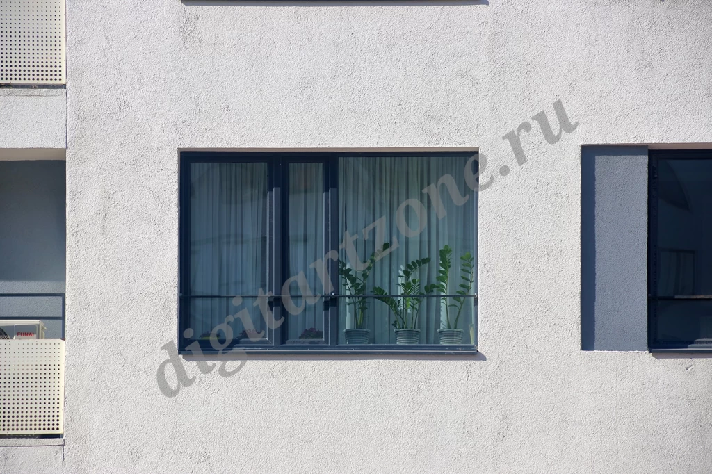 Фотография окна многоэтажного жилого дома с цветами.