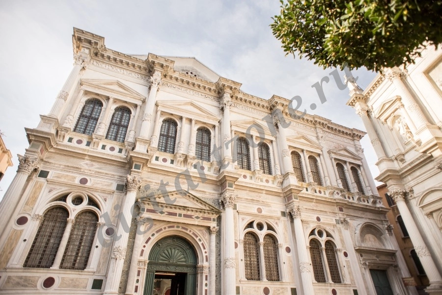 Скуола Гранде ди Сан Рокко в Венеции. Италия. Фасад здания.