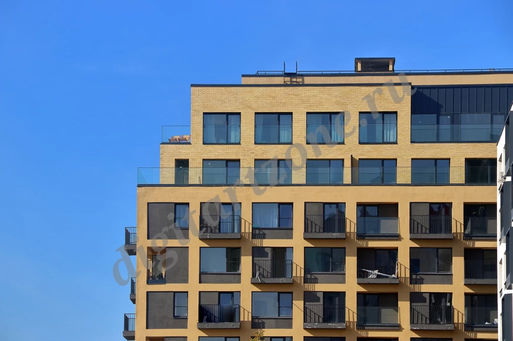 Фотография многоэтажного современного жилого дома.