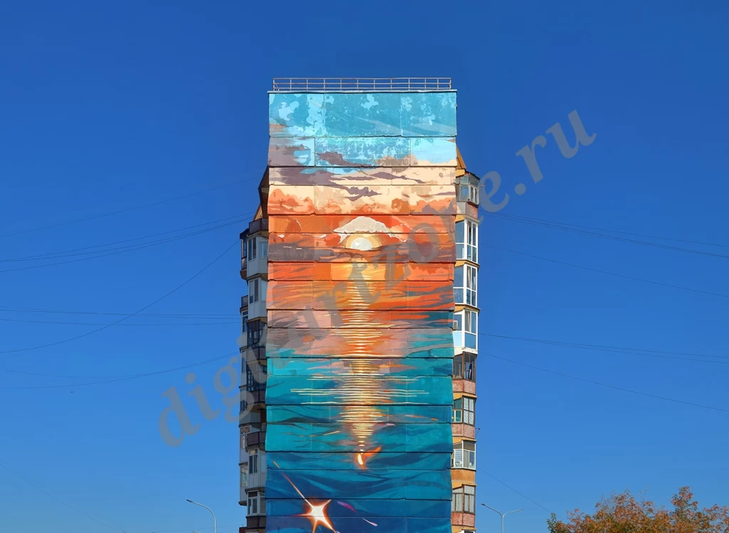 Фотография многоэтажного жилого дома с граффити на стене.