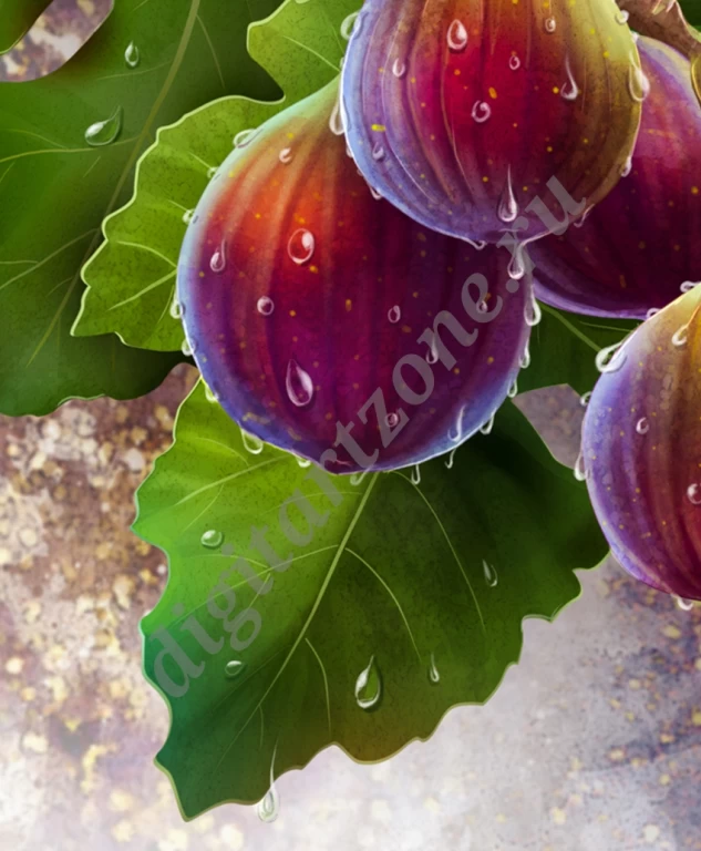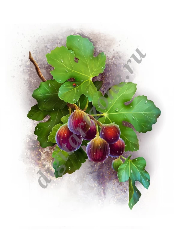 Яркая иллюстрация с изображением ветки Инжира в росе.