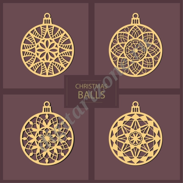 Елочные шары с узорами. Шаблон для лазерной резки, резьбы по дереву, фанере. Векторная иллюстрация