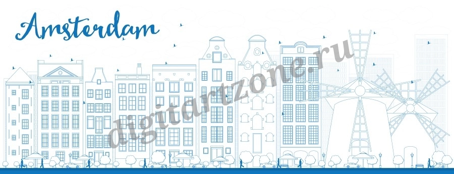 Город Амстердам. Нидерланды. Контурная иллюстрация.