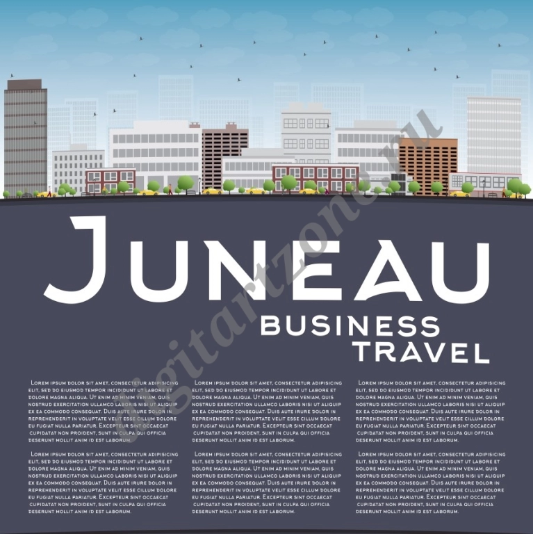 Город Джуно. Столица Аляски. США. Серые здания на голубом фоне и место для текста. Векторная иллюстрация.