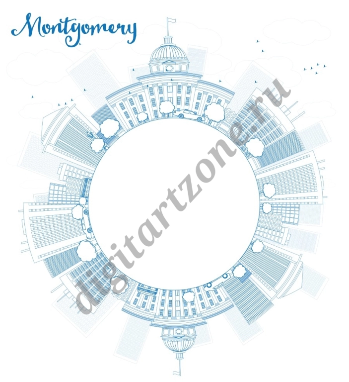 Город Монтгомери. Штат Алабама в США. Контурная иллюстрация.