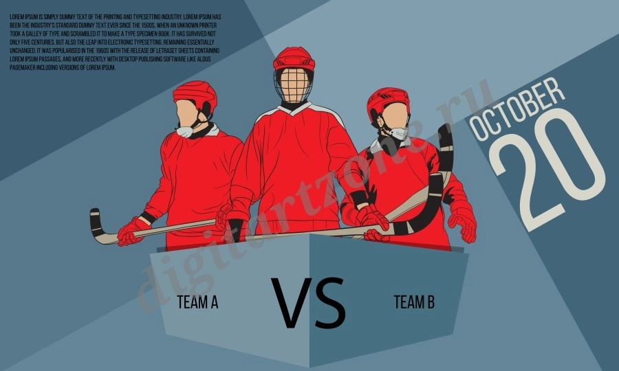 Плакат со спортсменами, играющими в хоккей с мячом на льду.