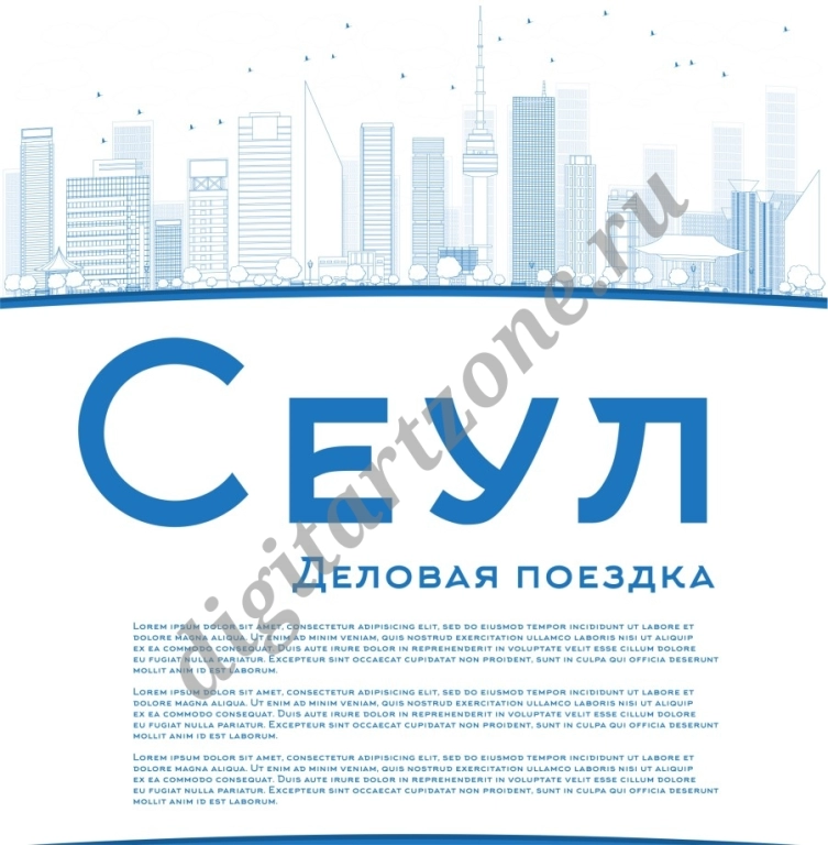 Сеул. Южная Корея. Контурные здания синего цвета. Векторная иллюстрация. Бизнес листовка.