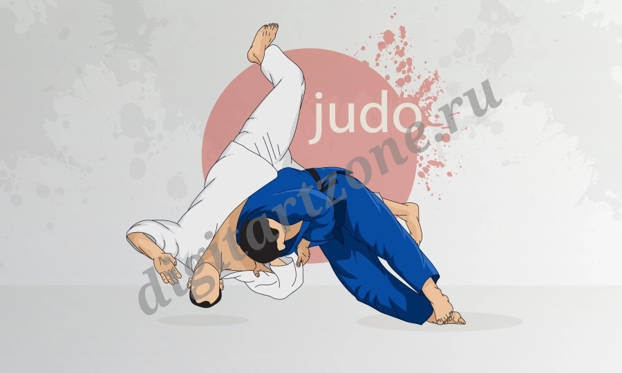 Восточная борьба, дзюдо. Борьба двух мужчин в олимпийской борьбе дзюдо. Абстрактный фон.